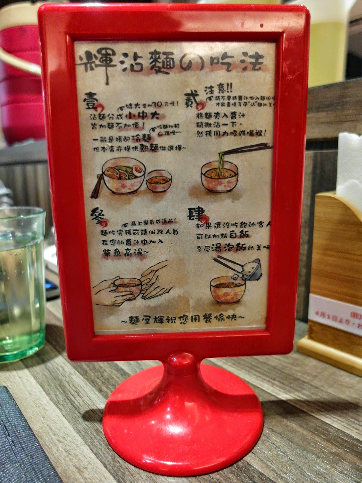 麵屋輝很貼心地在每一桌放上「輝沾麵吃法」