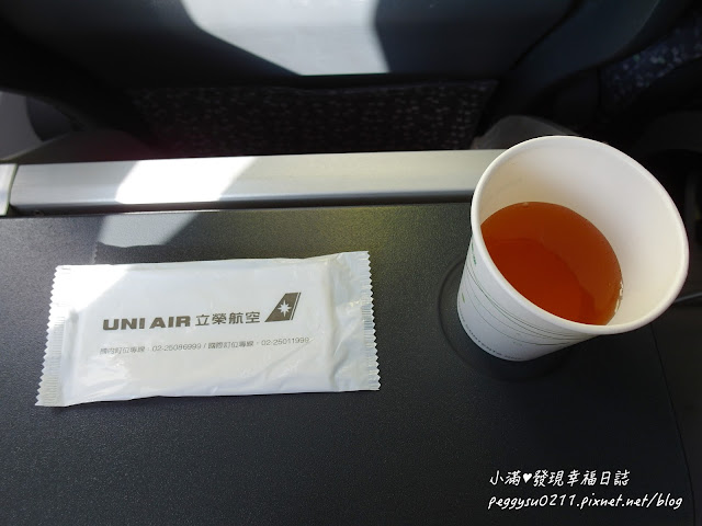 起飛後空服員送來飲料跟濕紙巾...但是沒有點心