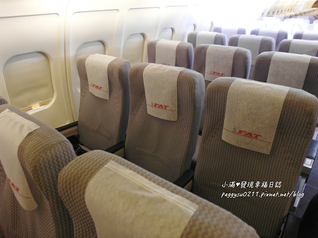 遠東航空座位分兩側,一側是三個位置,另一個是兩個位置