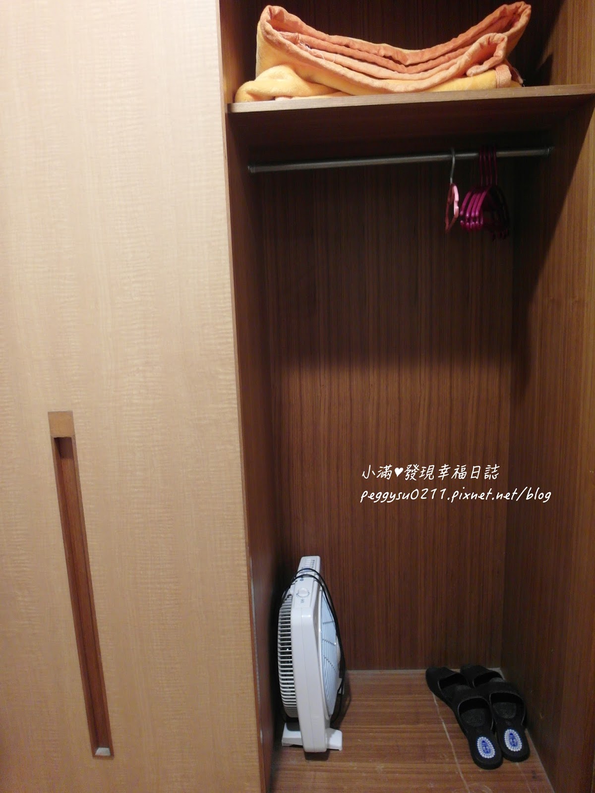 衣櫥中還有電風扇、拖鞋、涼被,讓大家隨意使用
