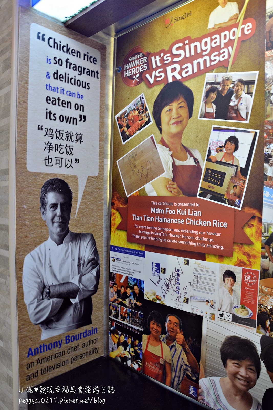 攤位上貼著天天海南雞的創辦人Madam Foo Kui Lian的海報