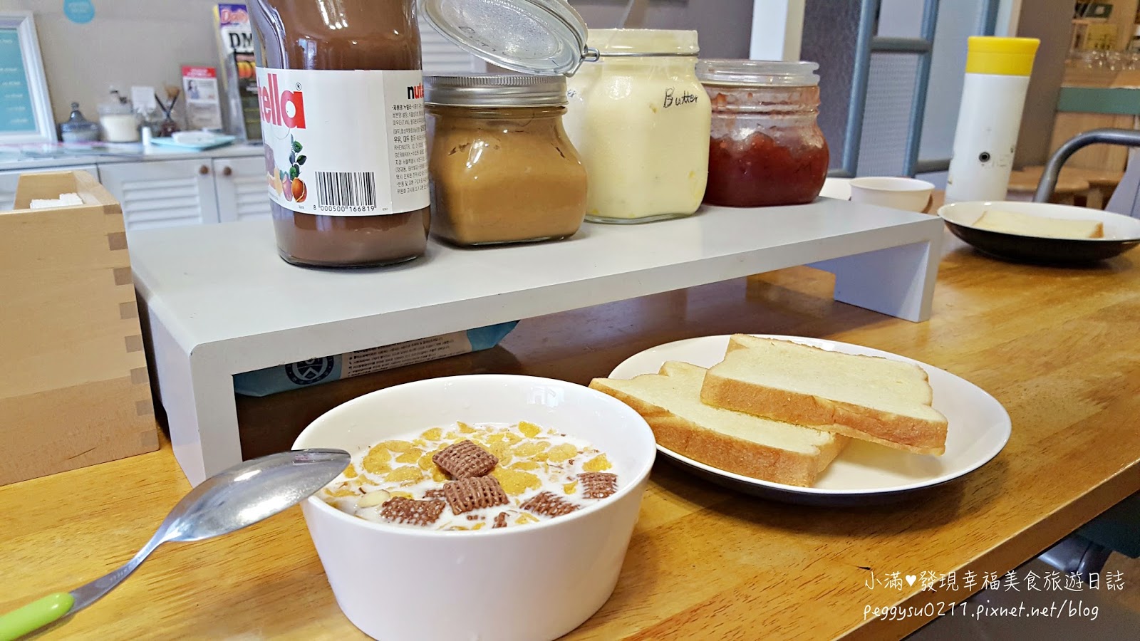 滿媽還幫我們煎了荷包蛋或是起司片炒蛋,再加上一碗鮮奶搭配玉米片