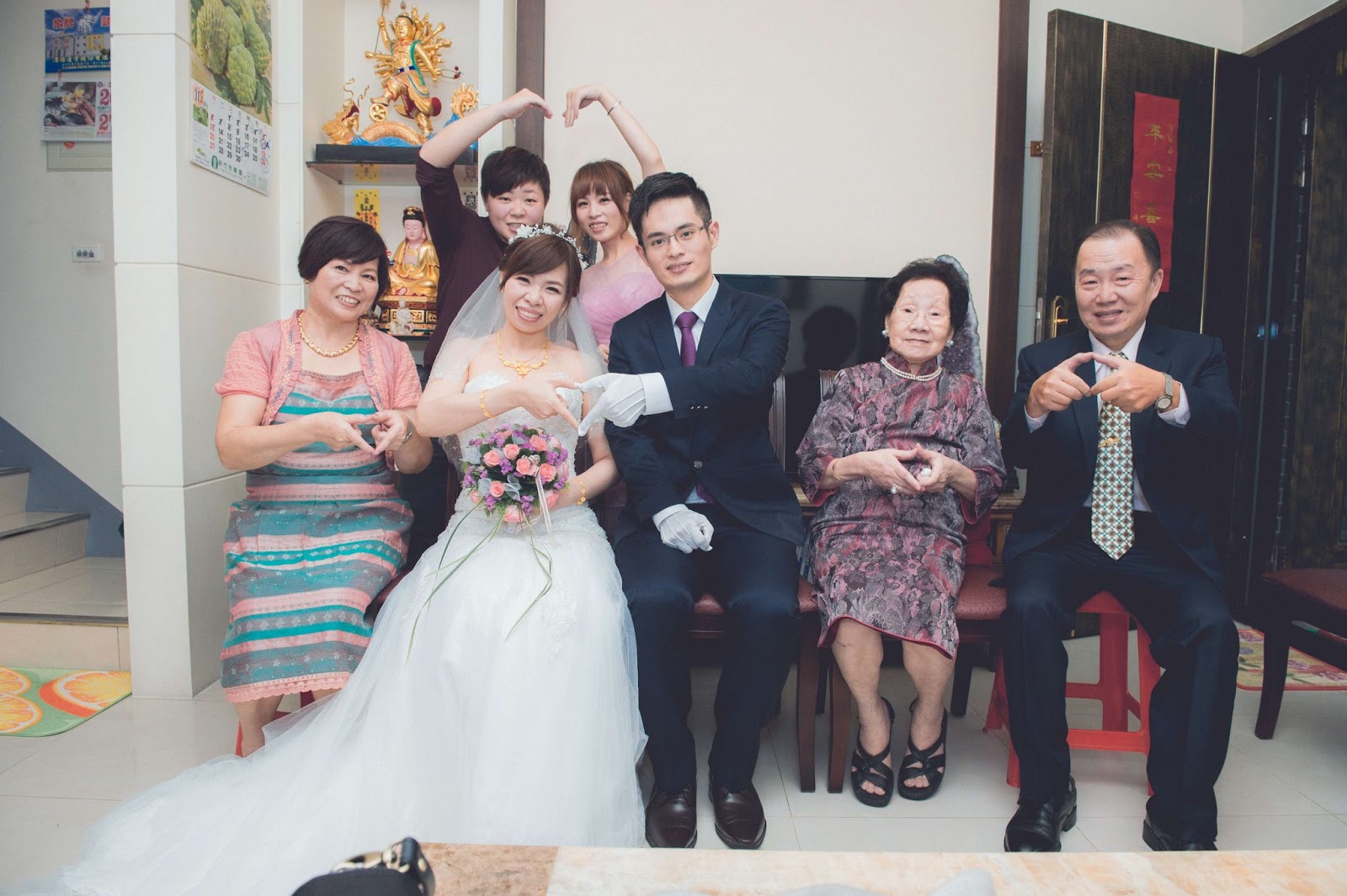 完成祭祖儀式,先來拍張全家福,奶奶也很可愛的學我們比愛心