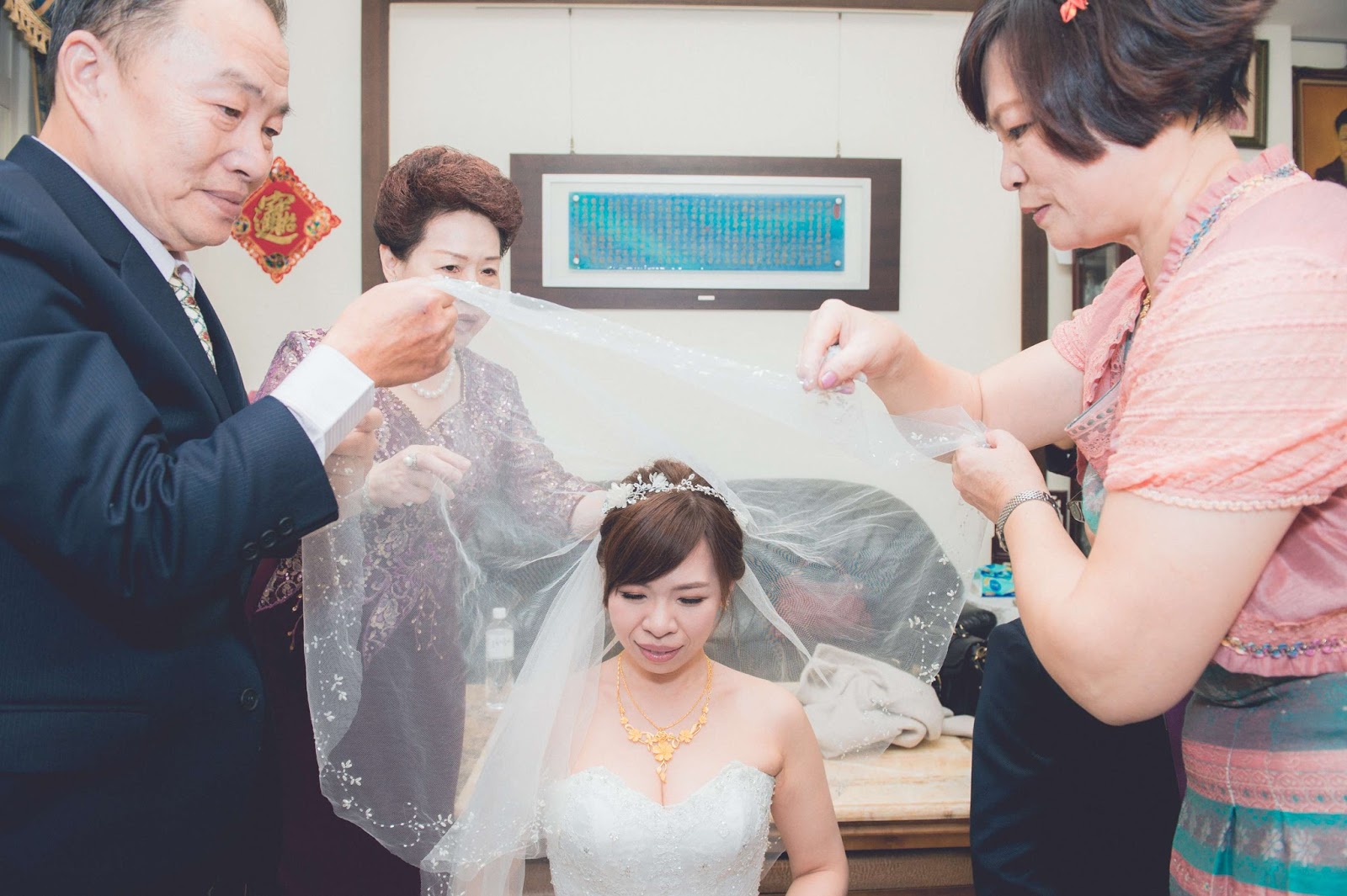 然後由滿爸跟滿媽幫我蓋上頭紗,從今往後