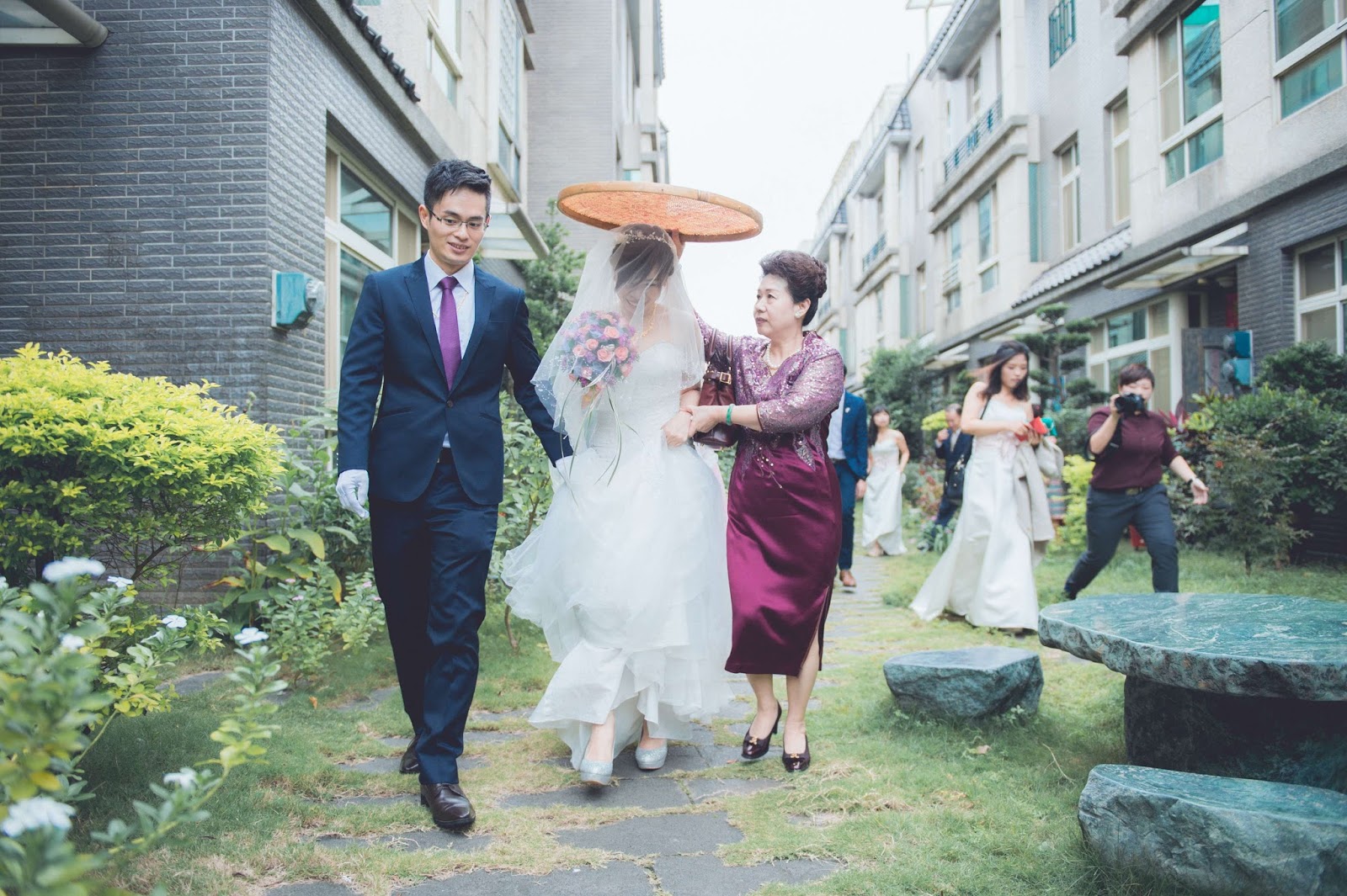 男方除了兩台迎娶車留下之外,公公婆婆還有其他親友就先回台北準備