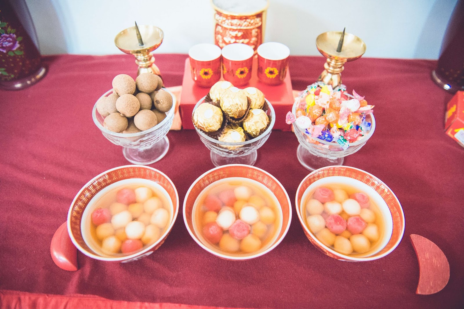 龍眼代表子孫興旺、圓滿多福;四色糖則是祝福新人甜蜜幸福