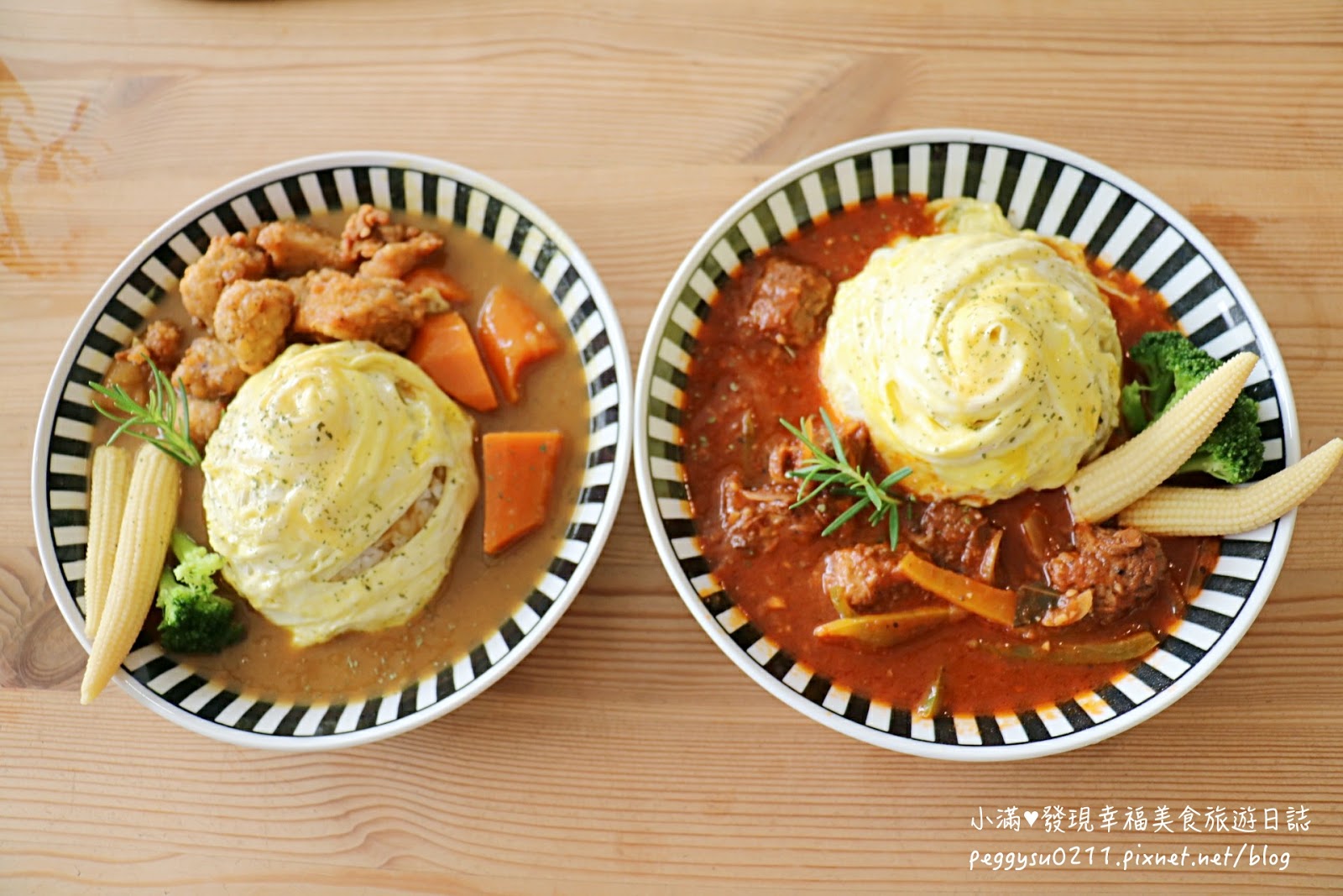 當天我們也點了兩款主餐,分別是咖哩鹹酥雞蛋包飯、紅酒燉牛肉蛋包飯