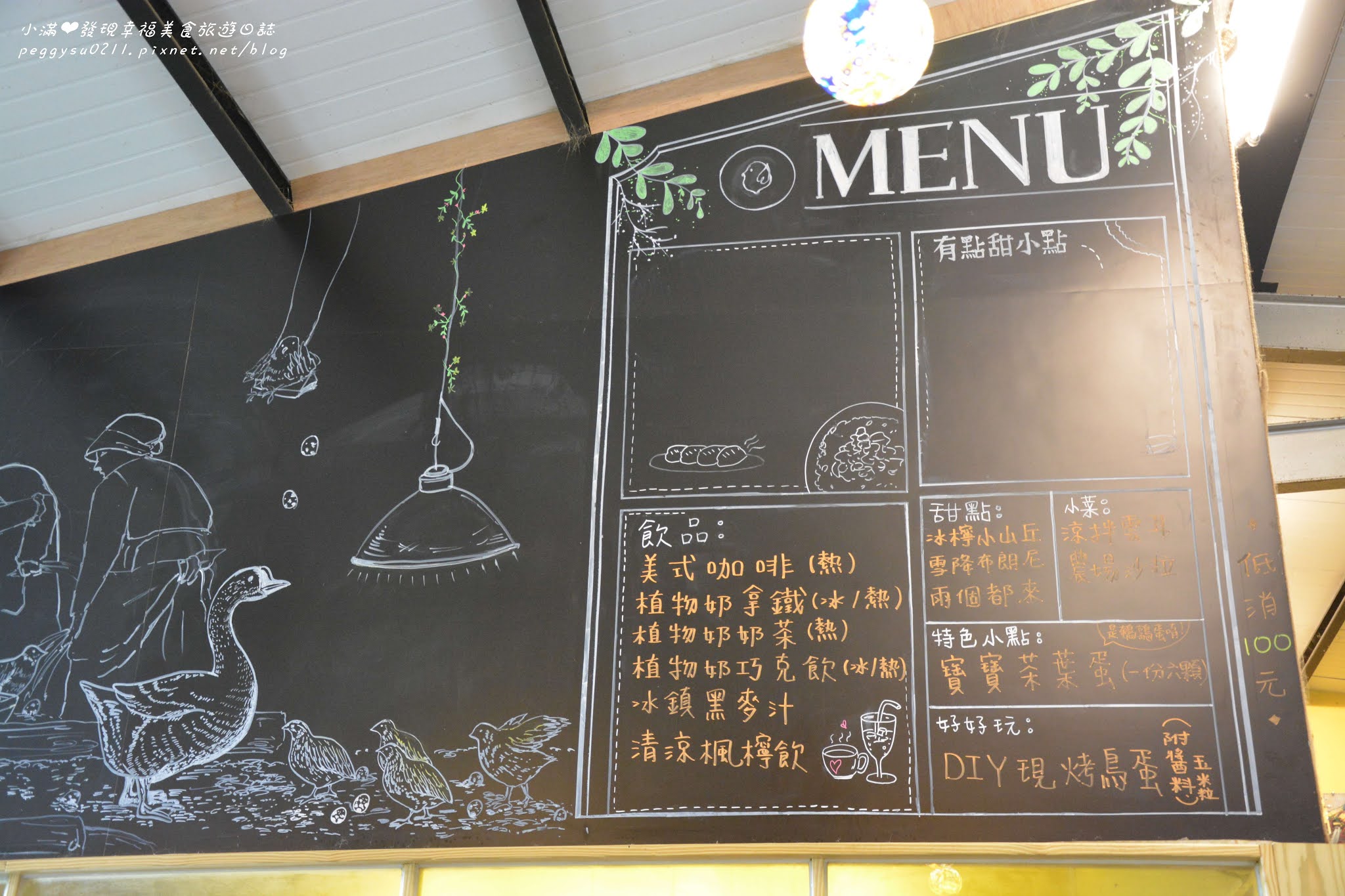 另一邊的牆面則是整面黑板,上面繪製著農場生活,還有MENU!
