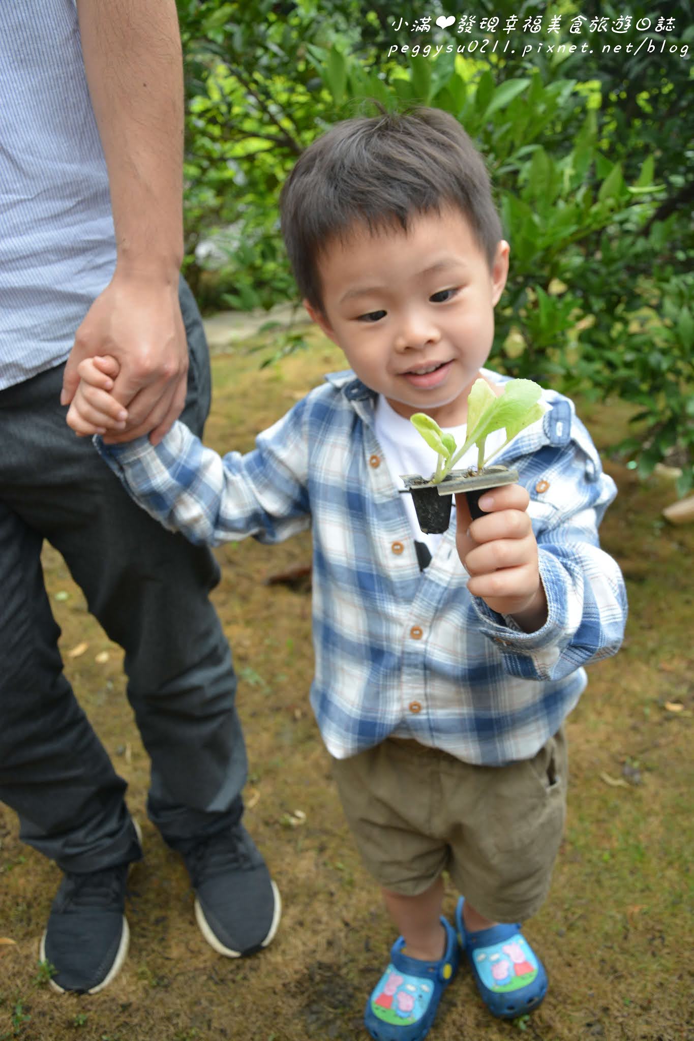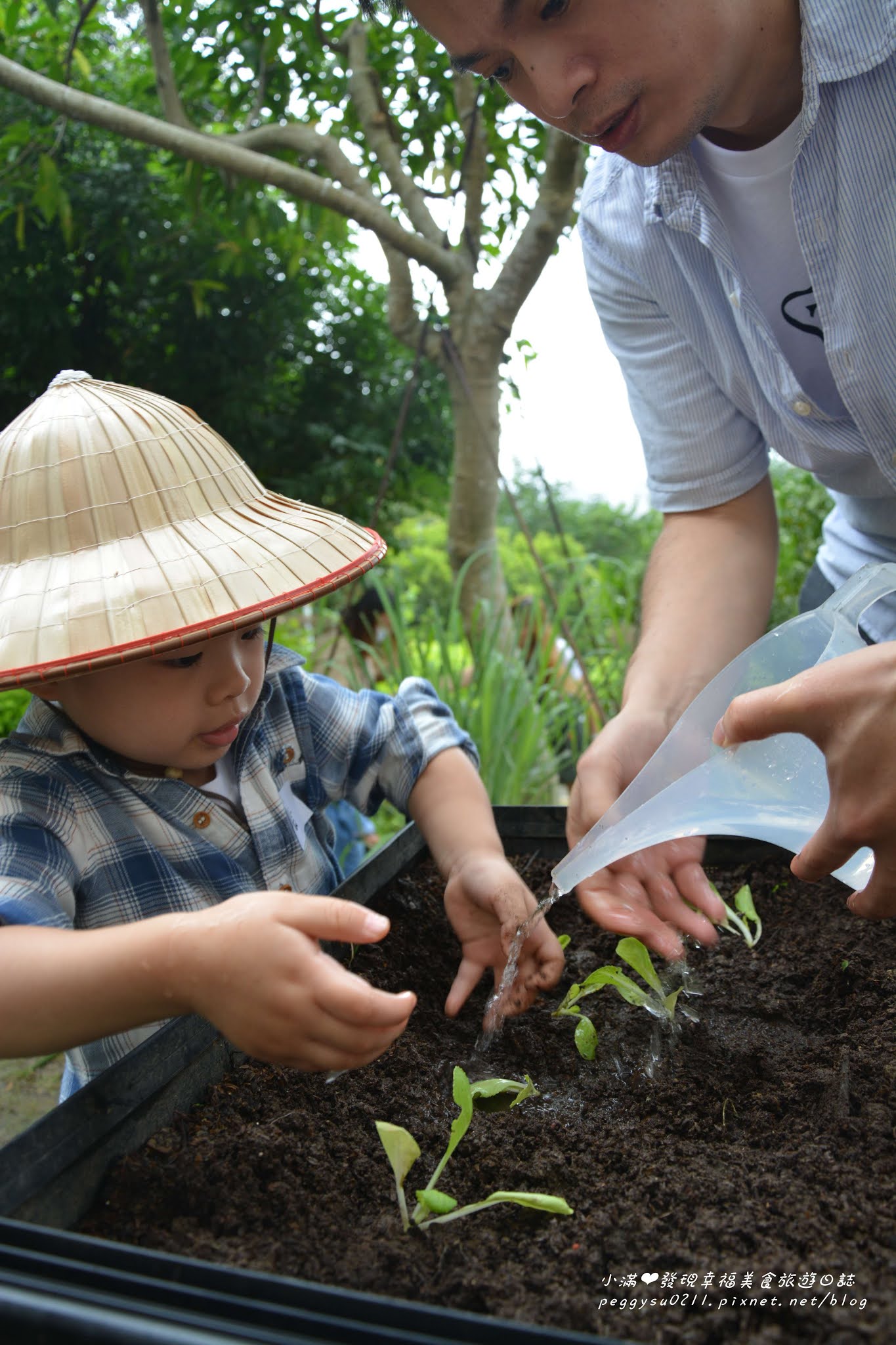 饅頭在伯伯(饅頭爸)的指導下,看起來也種得有模有樣