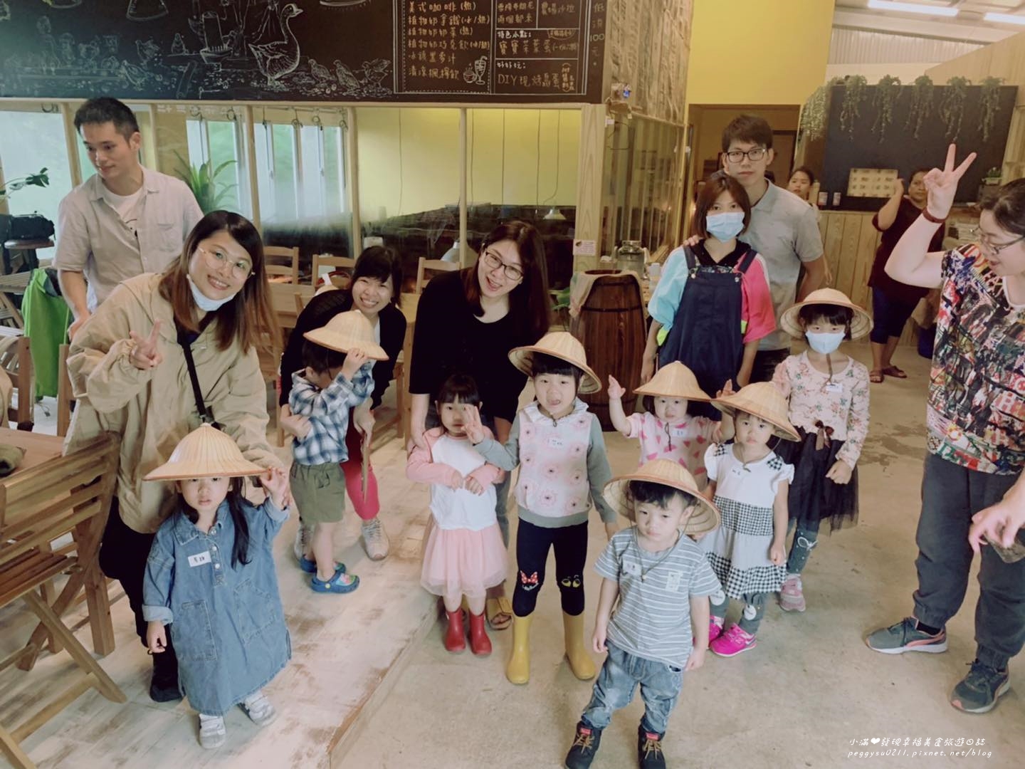牆上可愛的小斗笠,跟孩子們體驗時戴的一樣~