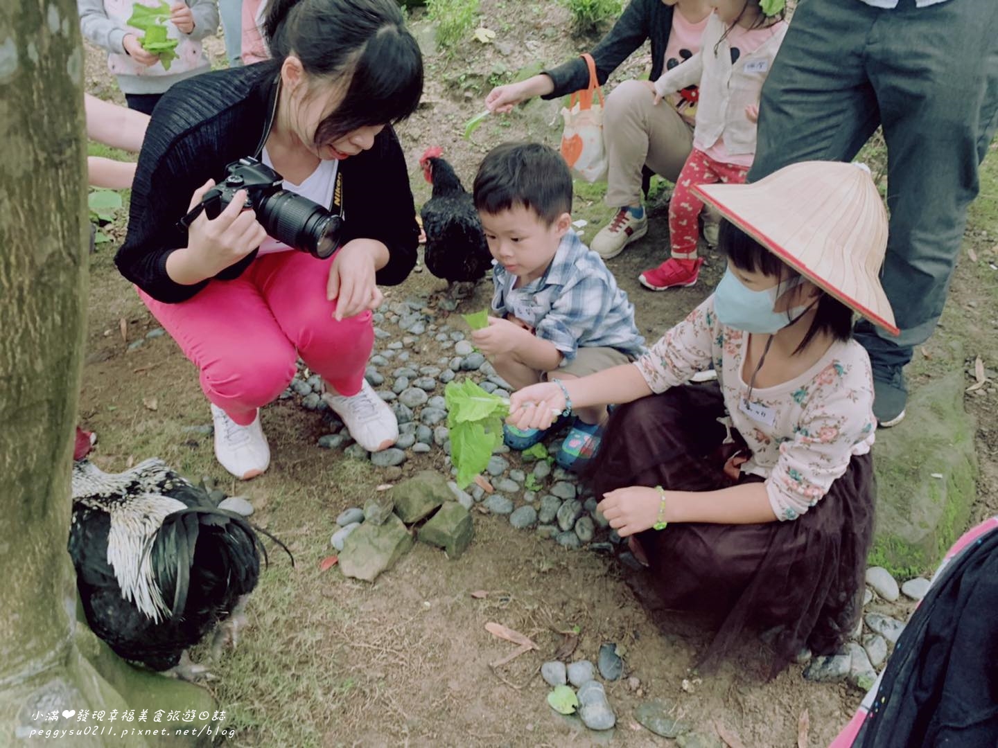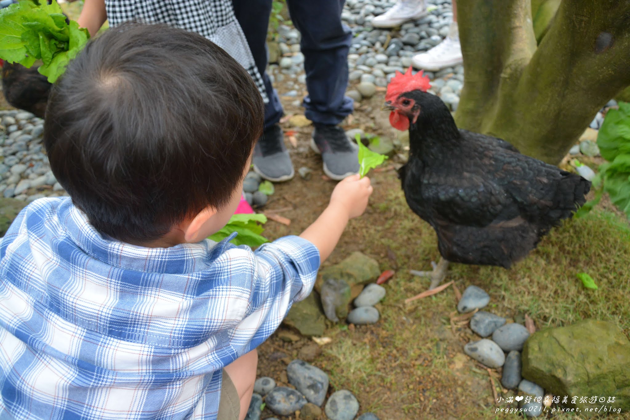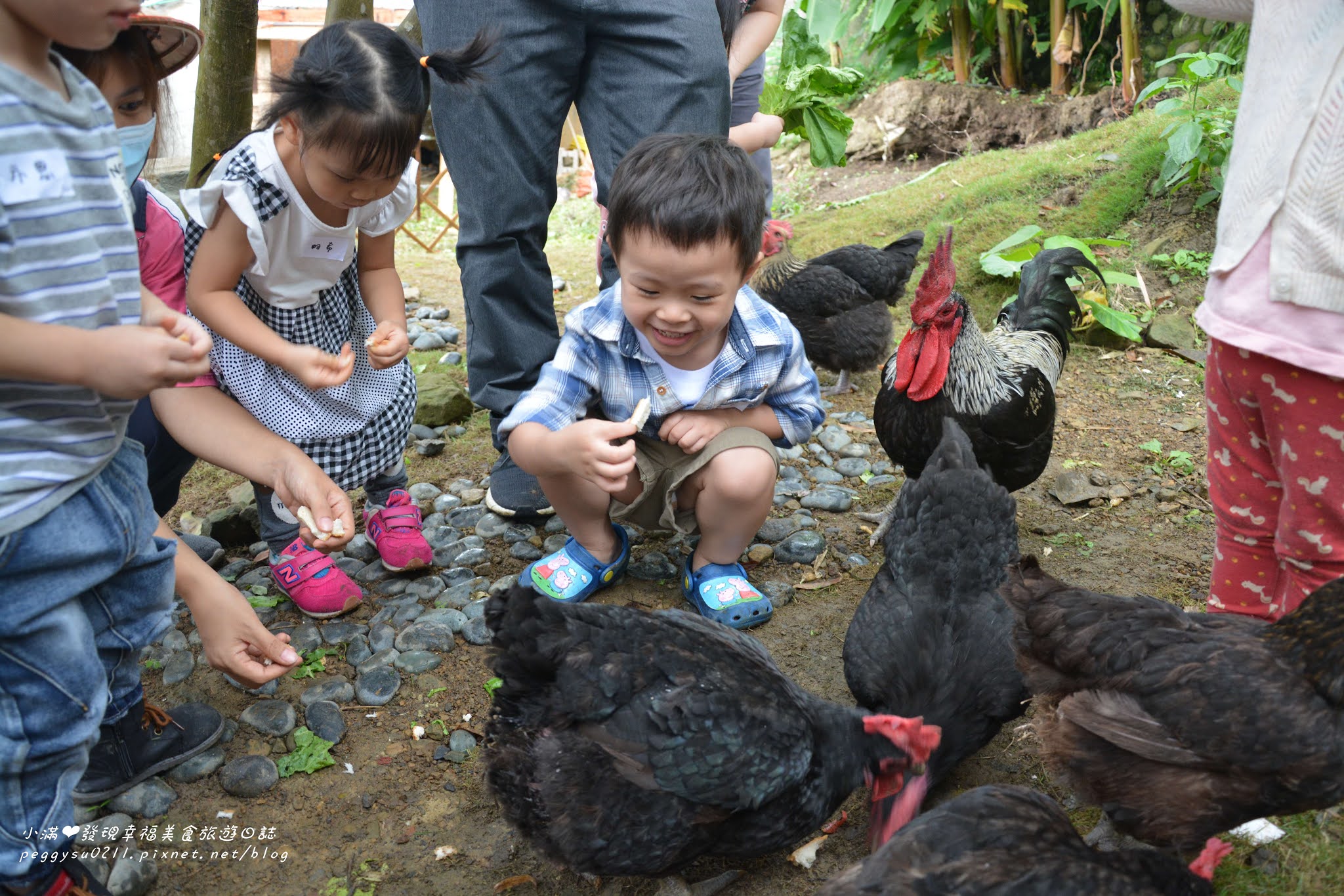 孩子們都很勇敢,一點都不害怕,雞群們也相當友善