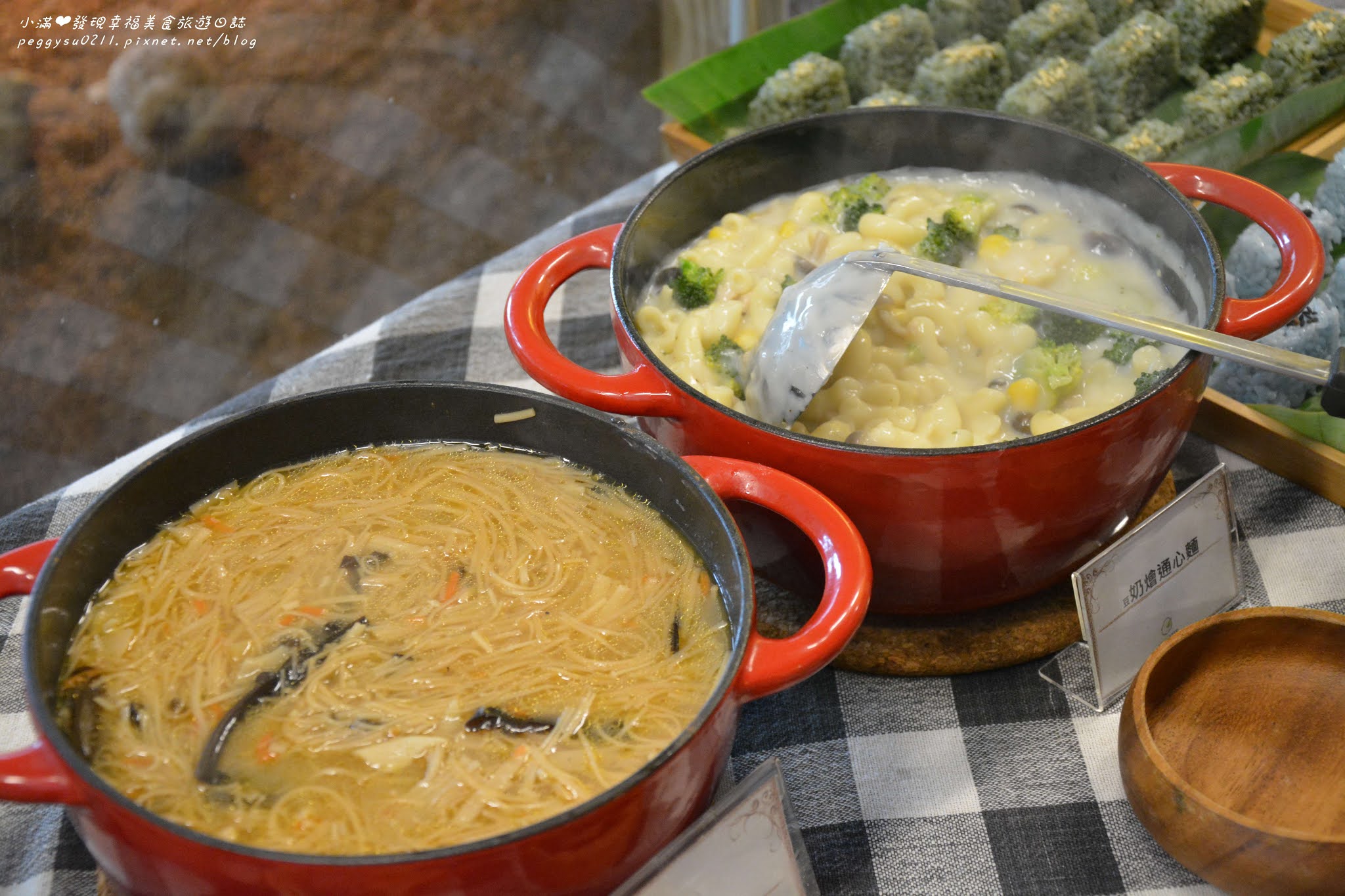 用鑄鐵鍋燉煮的平安麵線、奶燴通心麵,兩種都是孩子們很愛的主食